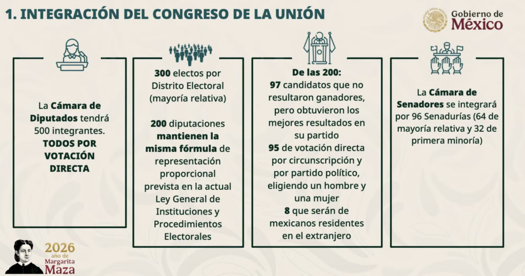 Esta Reforma Electoral propone cambios profundos en la integración del Congreso de la Unión. El objetivo consiste en que la ciudadanía decida de forma más directa:
